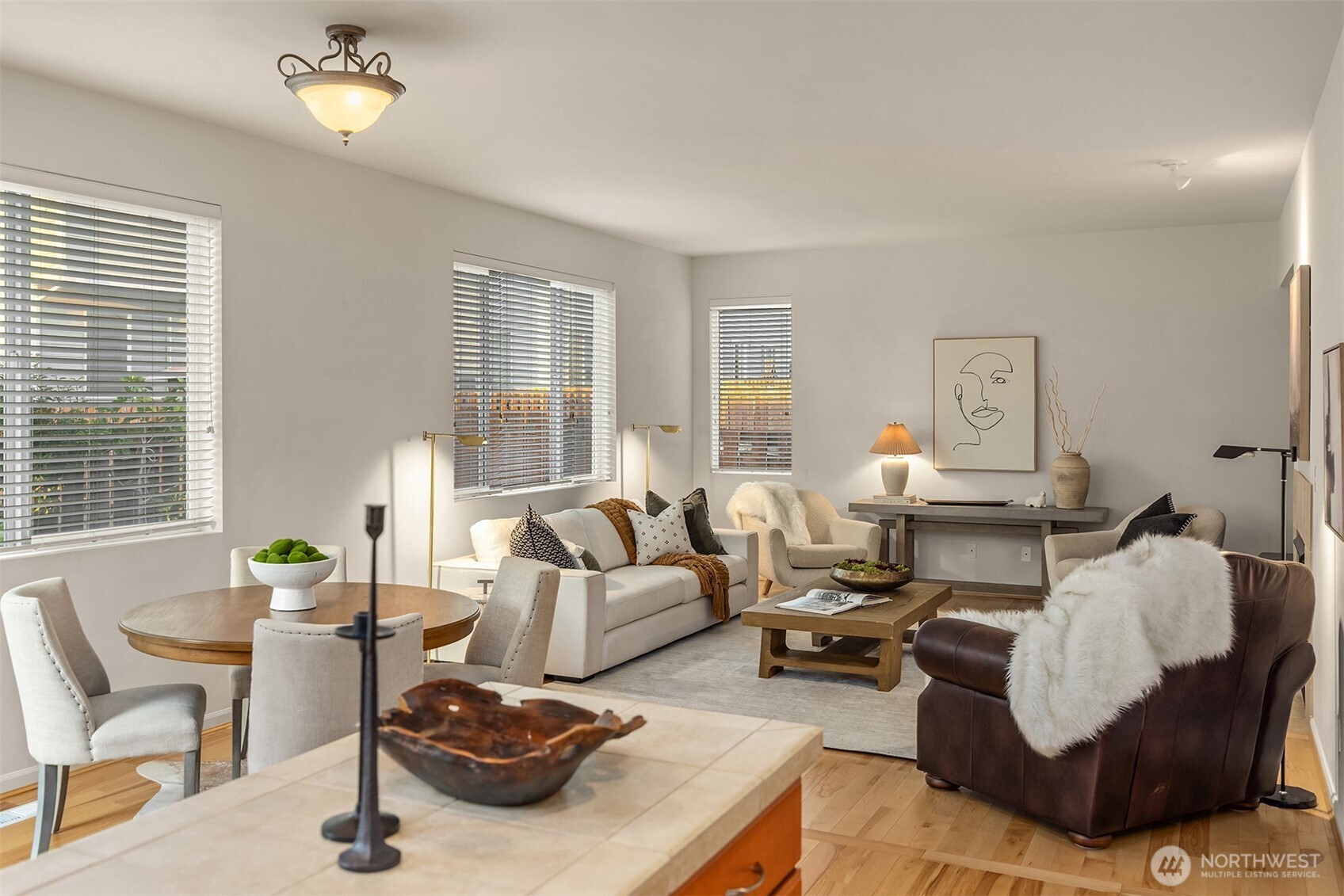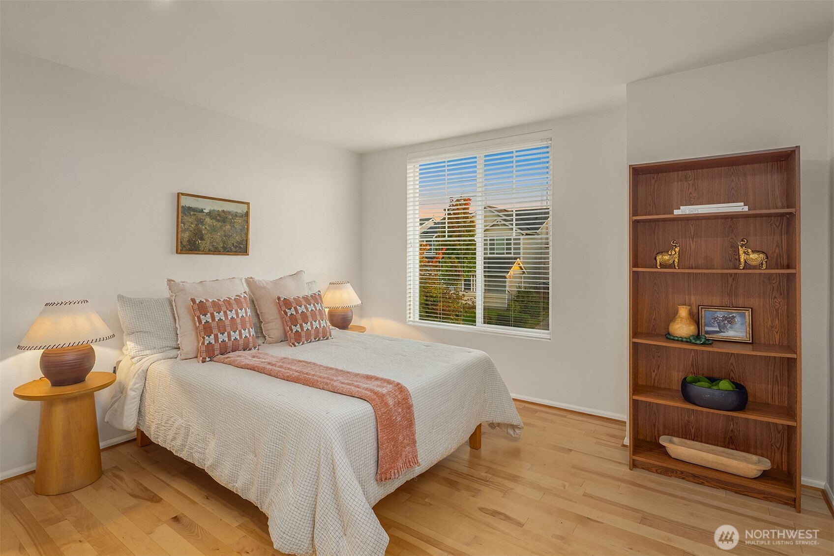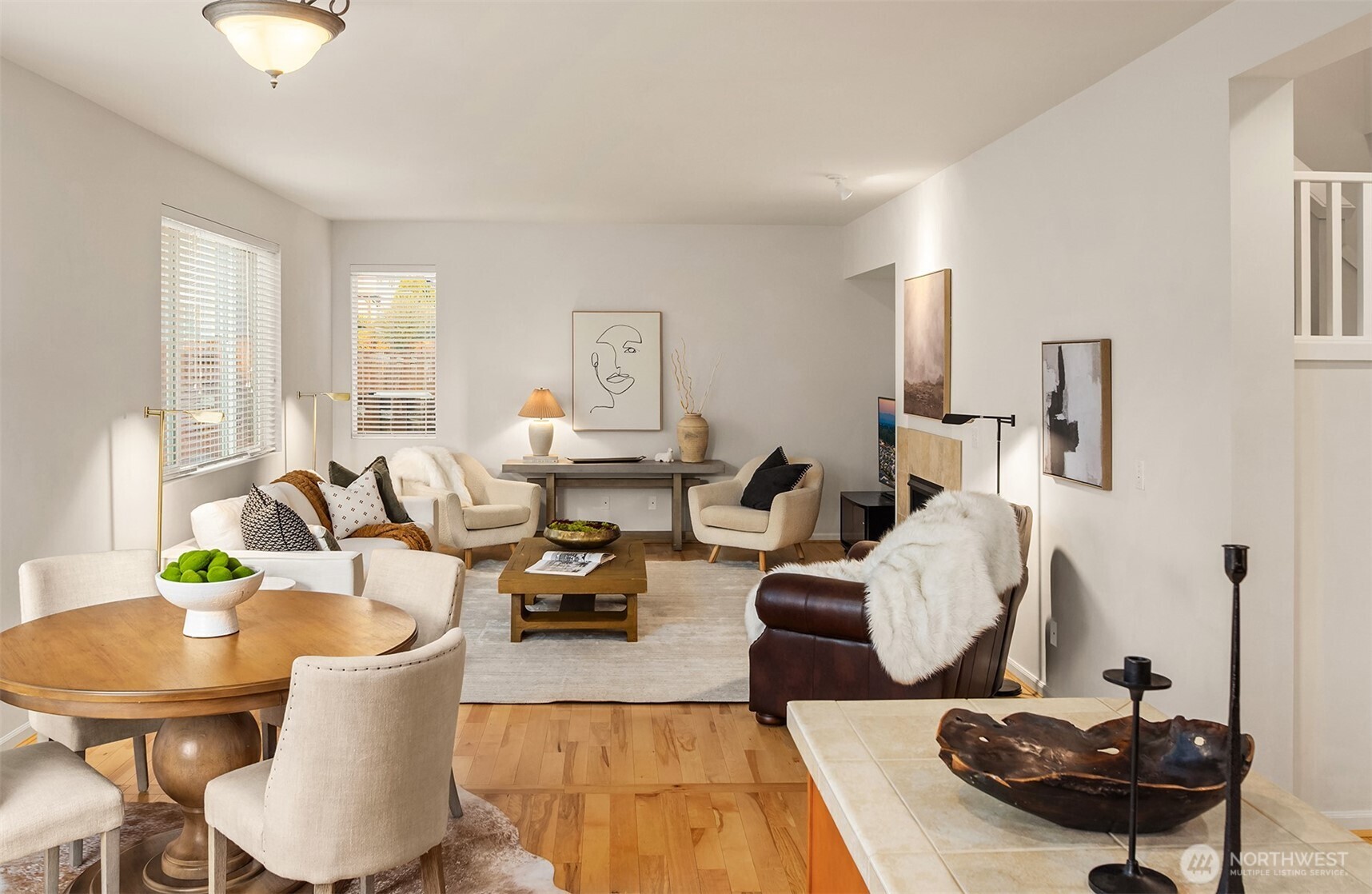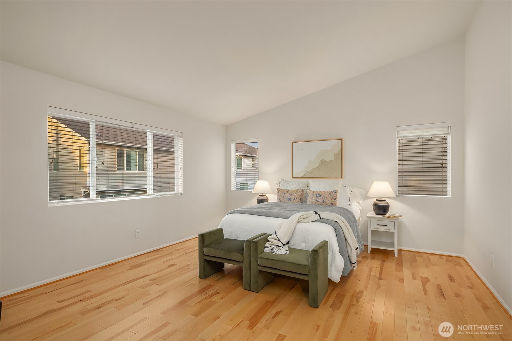 Sunny and move-in ready, this corner-lot gem in Lakeland shows true pride of ownership. Soaring ceilings and a bright dining room set the tone, flowing to a vaulted office and gourmet kitchen with wood cabinetry, island seating, and stainless appliances. The living room shines with hardwood floors, a gas fireplace, and custom niche. Upstairs, retreat to the vaulted primary suite with spa-like 5-piece bath, plus two spacious bedrooms and a full bath. A fenced yard with lush landscaping and sunlit patio completes this thoughtfully maintained home--just minutes to schools (Dieringer!), parks, dining, and shopping.